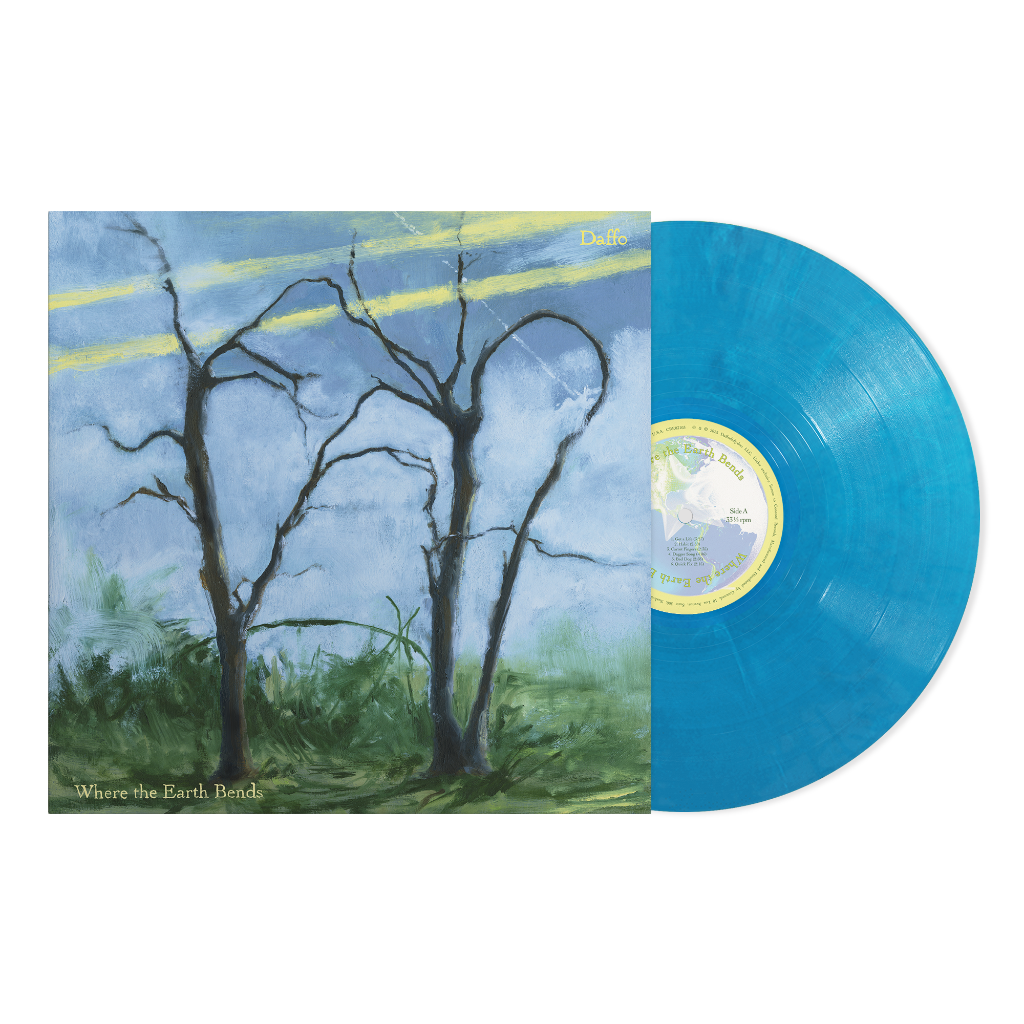 Daffo "Where The Earth Bends" Blue Eco-Mix Vinyl is a WEB EXCLUSIVE item that will be fulfilled directly from the record label. Additional shipping fees may apply.