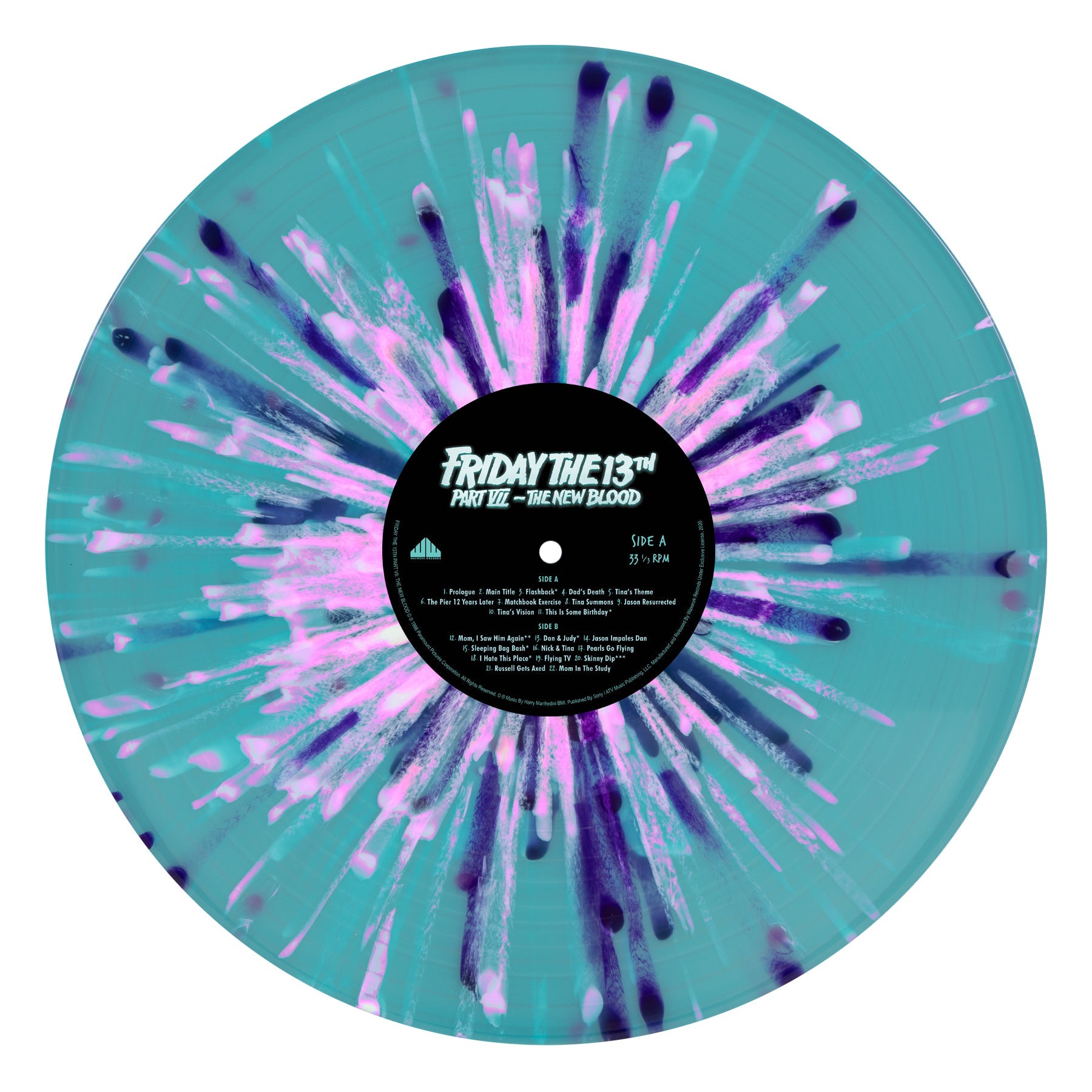 Waxwork Records is excited to present the definitive FRIDAY THE 13TH PART VII: THE NEW BLOOD soundtrack by including, for the first time, the complete film music by both composers Harry Manfredini and Fred Mollin. Features include 2xLP 180 gram “Psychokinetic Splatter” colored vinyl, deluxe packaging, new artwork by Sarah Deck, the complete soundtrack sourced from the original 1988 master tapes, and heavyweight gatefold jackets with satin coating.