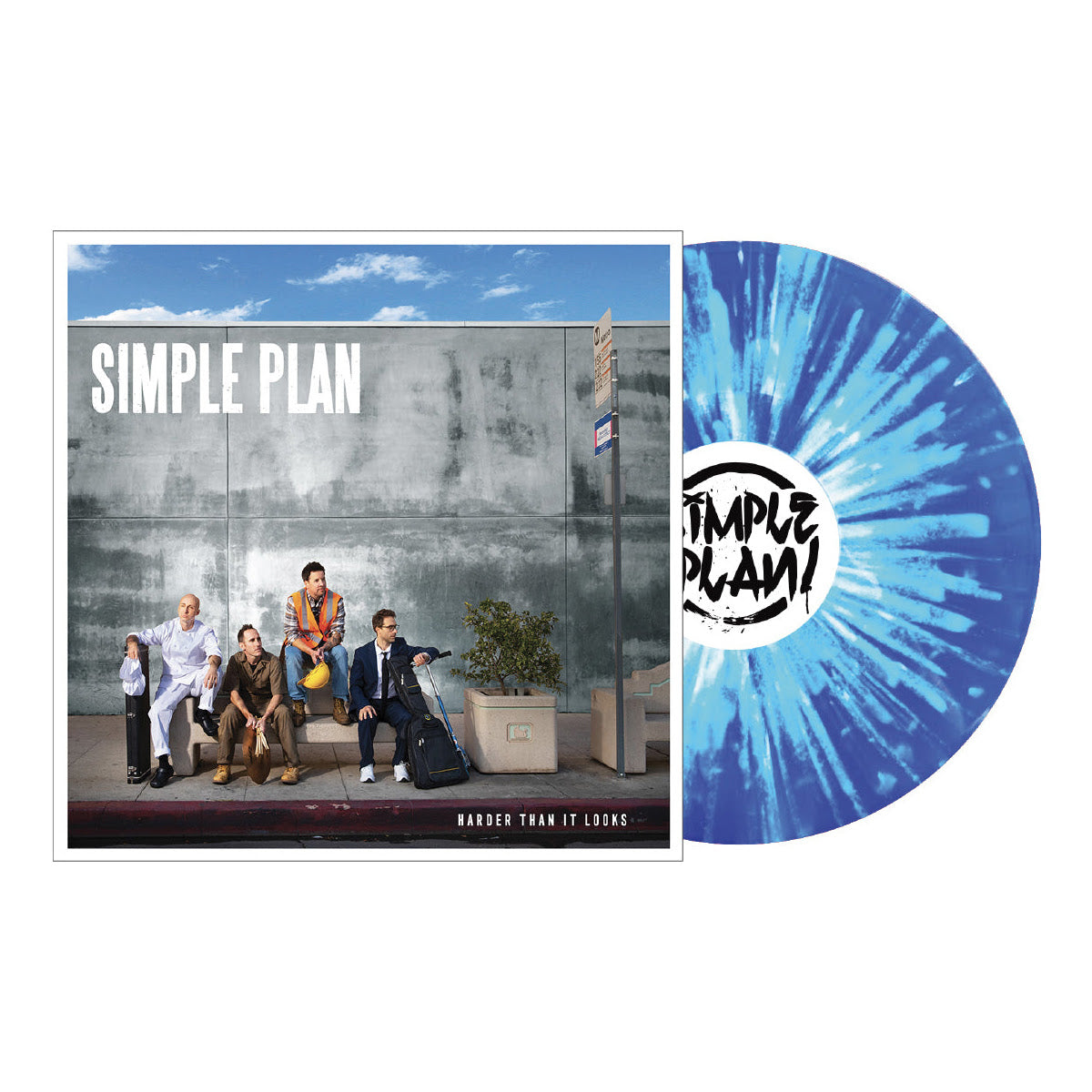 Simple Plan’s Harder Than It Looks on “Blue w/ White Splatter” 140g wax with a printed inner sleeve.