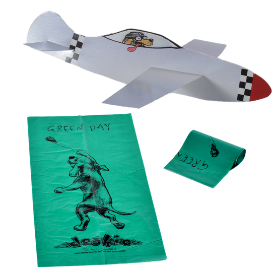 This deluxe vinyl box features the six LPs pressed on 6 different varieties of brown vinyl, plus a 36-page 12” x 12” book. The box also includes many fun memorabilia items inspired by the “Dookie” artwork: Doggie Poop Bags, Air-Freshener, Poster, Color-in litho, Button Set, Magnet Sheet, Postcard, Bumper Sticker and Paper Plane.