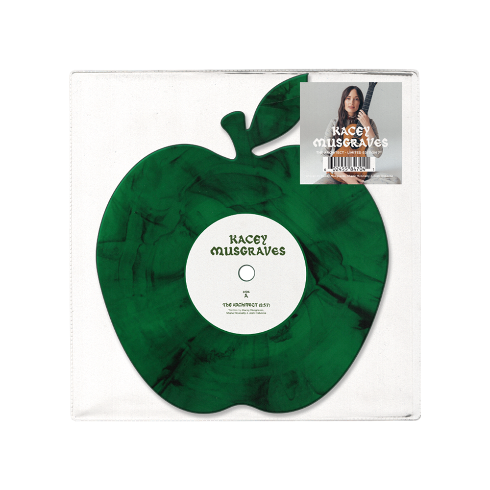 Kacey Musgraves' Grammy Award winning song The Architect pressed on a limited collector’s edition apple-shaped die-cut 7" vinyl