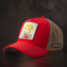 💛 Bright yellow mesh with red accents for full Sunday comics energy