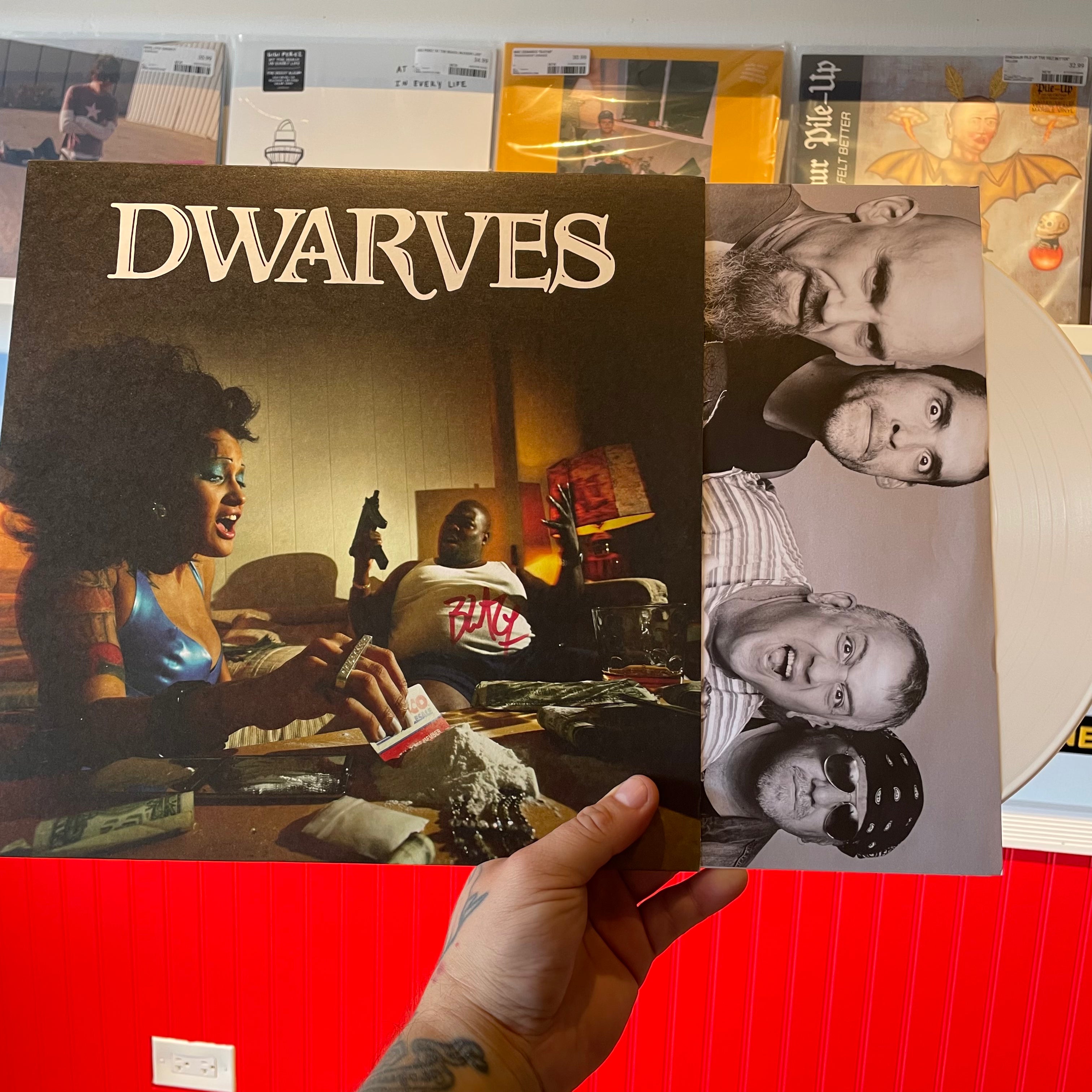 Teen pop whiz kid Andy Now mans the boards for the Take Back The Night LP as the Dwarves embrace their 'turd in the punchbowl of punk' legacy. Old school vets like Vadge Moore and Saltpeter, studio pros like Nick Oliveri and Josh Freese and flat out demented scallywags like the Fresh Prince of Darkness join Hewhocannotbenamed for a spectacular and genuinely creepy record. Blag the Ripper and Rex Everything split vocal duties like fire and ice or Abbott and Costello. Single "Julio" reminds America that the Dwarves will rip off the Ramones as shamelessly as they bite Justin Bieber's dance moves and the Indigo Girls' fashion sense.
