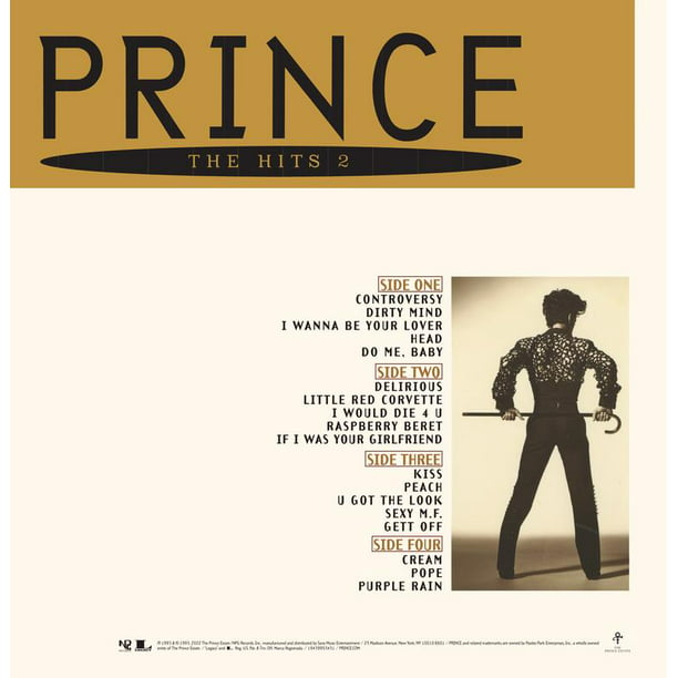 Originally released in conjunction with The Hits 1 in 1993, and made available as both a stand-alone release and as part of the three-disc box set, The Hits/The B-Sides, The Hits 2 contains 18 tracks across two LPs, including some of Prince's most provocative singles from the first half of his career, including "Head," "Dirty Mind," and "Gett Off" along with huge hits like "Purple Rain," "Kiss," "Raspberry Beret," and "Little Red Corvette." In addition to the 16 popular singles from his first 15 years as a recording artist, The Hits 2 also included the then-previously unreleased tracks "Peach" and "Pope."